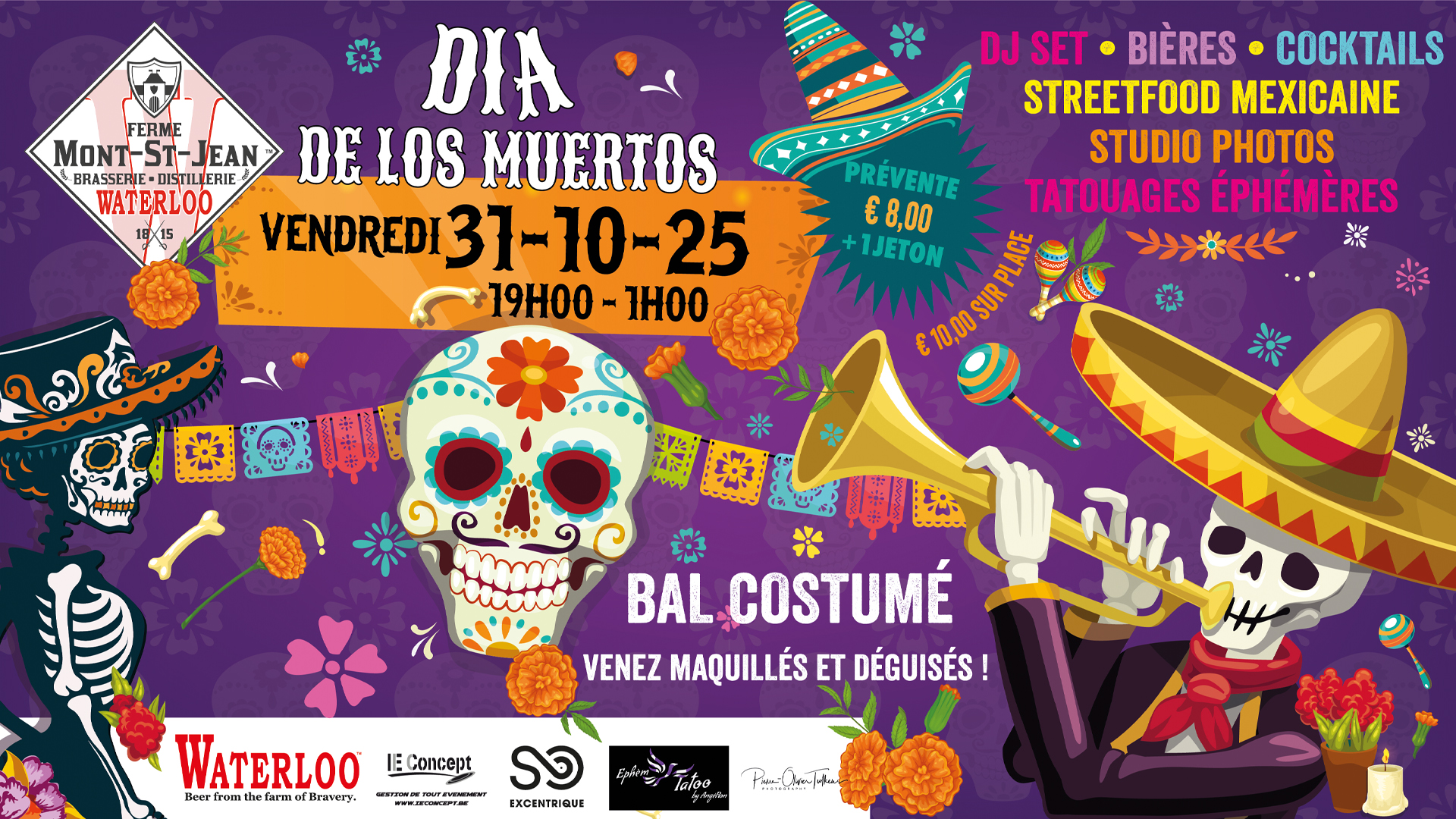 • Dia de los Muertos at Ferme de Mont-Saint-Jean! Dive into the colorful and festive world of Mexico with live music, Afro-Latino DJ, street food, and cocktails. Costumes and makeup are welcome for a night full of surprises!